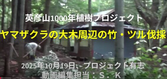 ヤマザクラ周辺の竹・ツルなどの伐採(英彦山1000年植樹プロジェクトの番外編、2025年10月19日)