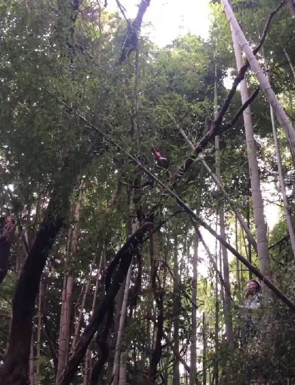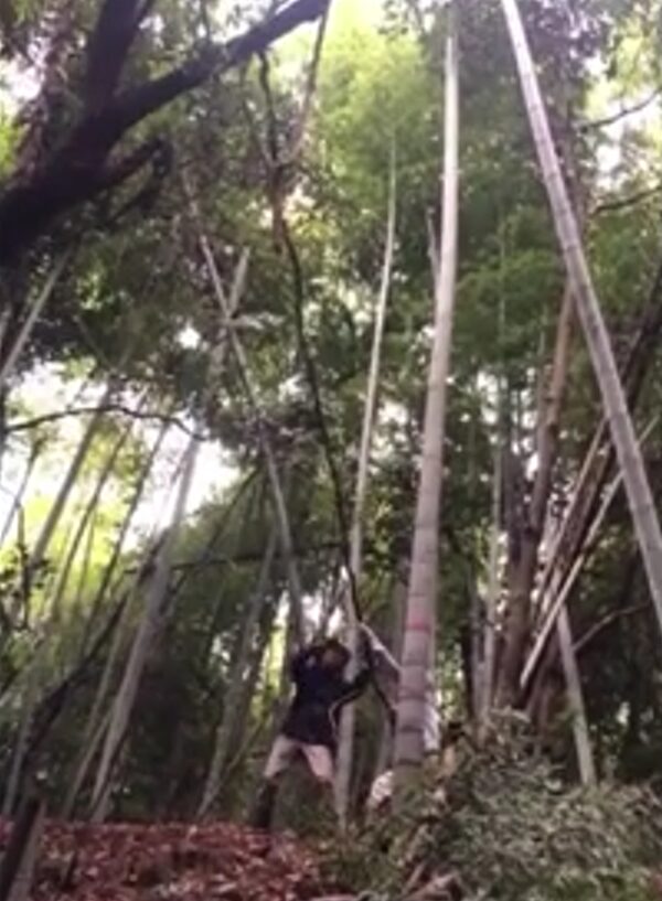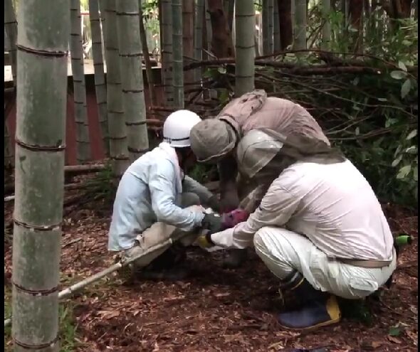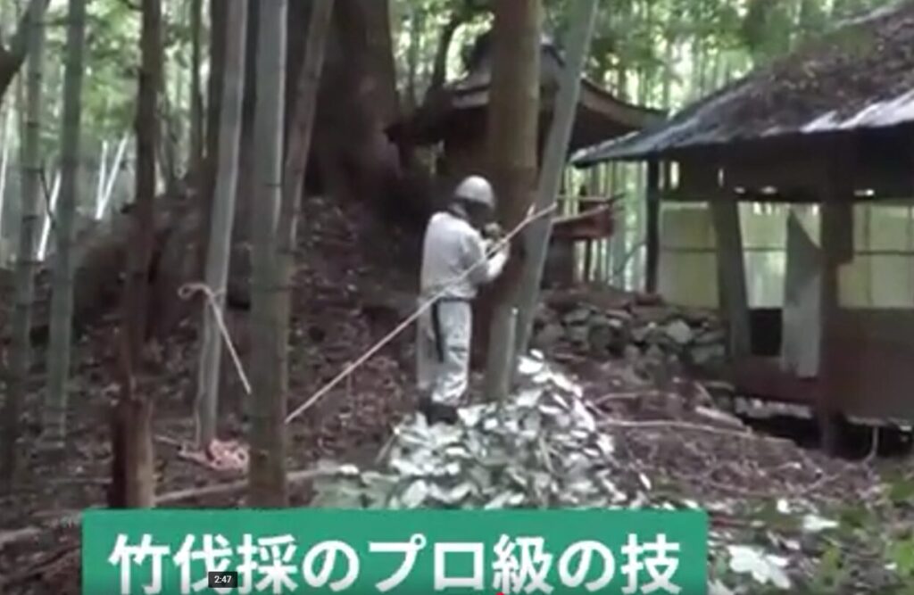 午後は、私の手入れ不足のチェーンソーも、HAMAさんが動くようにしてくれて、作業が捗り始めた。HAMAさんは大きな孟宗竹を一人で伐るために、たくみにロープを活用して、倒す方向を決めて、着々と作業を進められた。