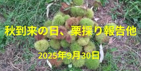 それでも、畑の一段上の段に在り、周囲は草が伸び放題なので、暑さが一段落しない限り、採りに行き気がしなかった。9月30日、ようやく秋らしい空気となり、少し動いても汗びっしょりという日々は 何とか終わった模様だ。タイミングを逃さないようにと栗採りに行った。