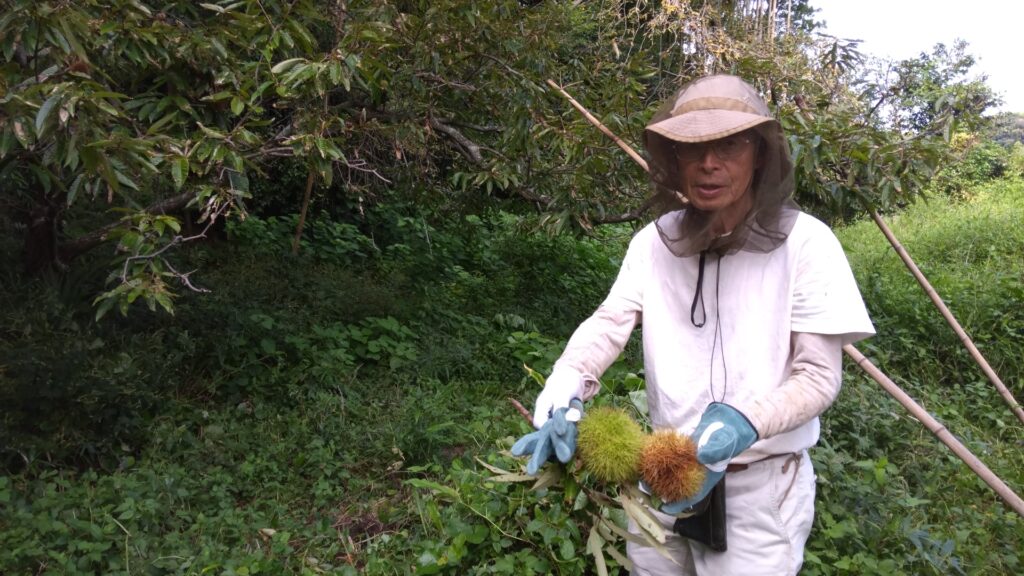 青いイガを剥ぐのは大変であったが、何とかやれた。