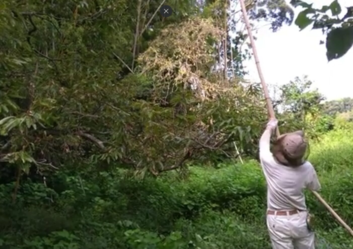 手が届くくらいの高さのものは、もぎって採ったりもしたが、一定の高さ以上のものは、竹の棒を使って採った。