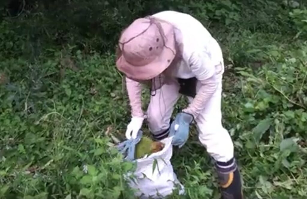 去年使っていた棒を残していたので、それを使っていたが折れてしまった。新しい棒を作ったが、新しい竹は重く、長いものは操るのが大変であったので、高い場所の実はあきらめた。それでも袋一杯分は何とか採れた。