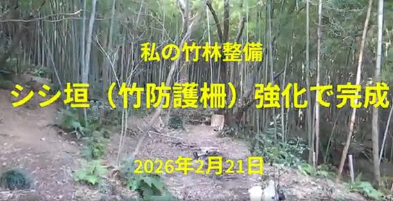 シシ垣(竹防護柵)を仮完成させたのが、2026年の1月末。その後、様子を見ていたが、防護柵内に入られ、竹の芽(タケノコのたまご)を喰い荒らされた跡を見つけた。入られた場所は、確定はできなかったが、推測はできた。第1防護柵の山側の部分に低い箇所や傾斜が付いている箇所があり、その辺りと思った。
