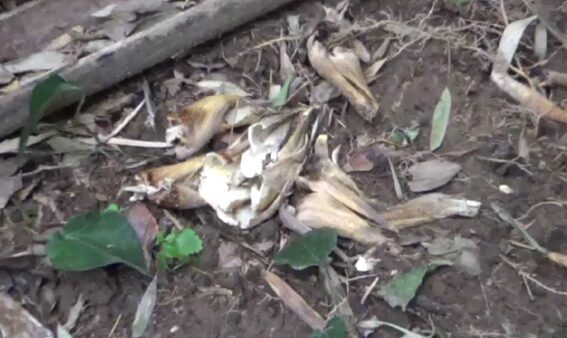 ところが、竹林内には、未だ12月というのにあちこちにイノシシがタケノコの芽(地面内)を喰い荒らした跡がある。