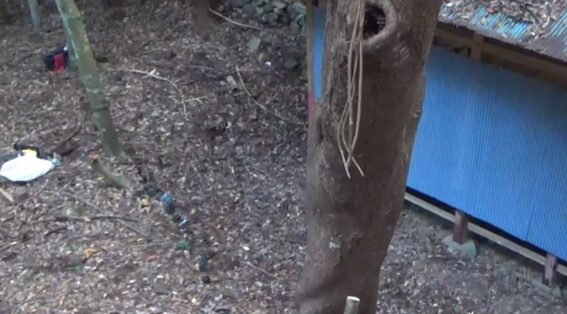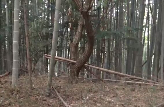 上記の斜面を登った一段上には、栗の老木が5~6本程ある。周囲の竹に被圧されて枯れてしまっているものもあるが、5~6本程度は生きている。