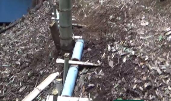 広場づくりの作業と並行して、HAMAさんとS.Kは、栗林平坦地での作業を行っていたが、広場からその平坦地への道は、急な斜面となっている。中々登りにくい場所である。